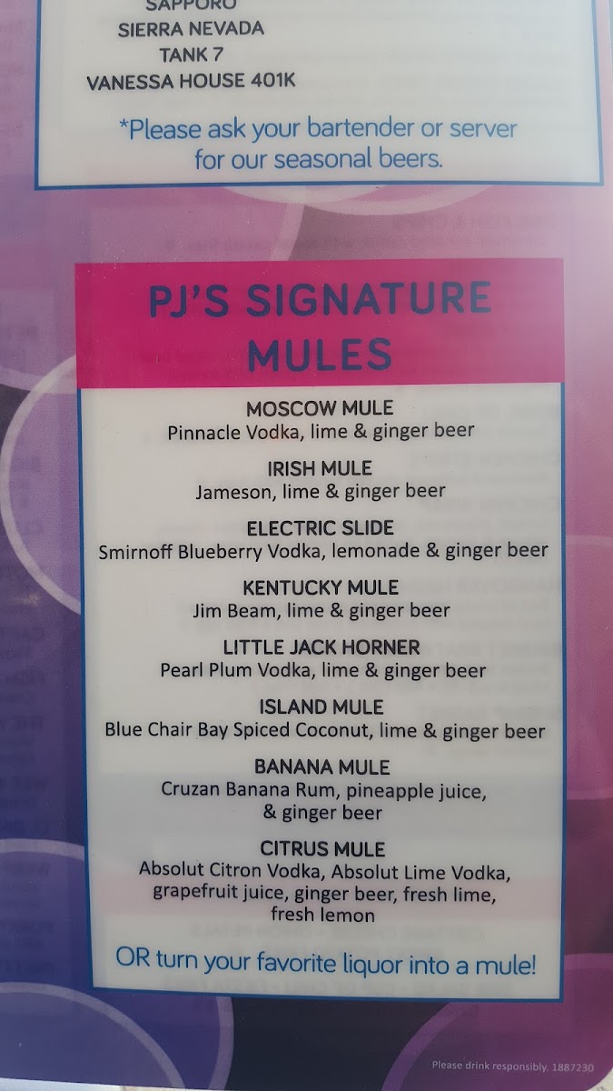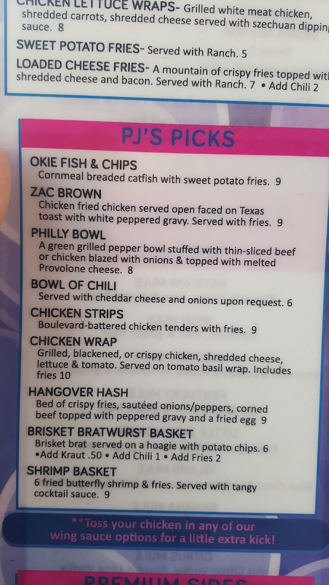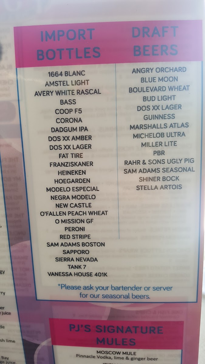 Overall, the menu at PJ’s invites you to savor simple, satisfying food and drinks that fit well into casual gatherings and everyday good times.